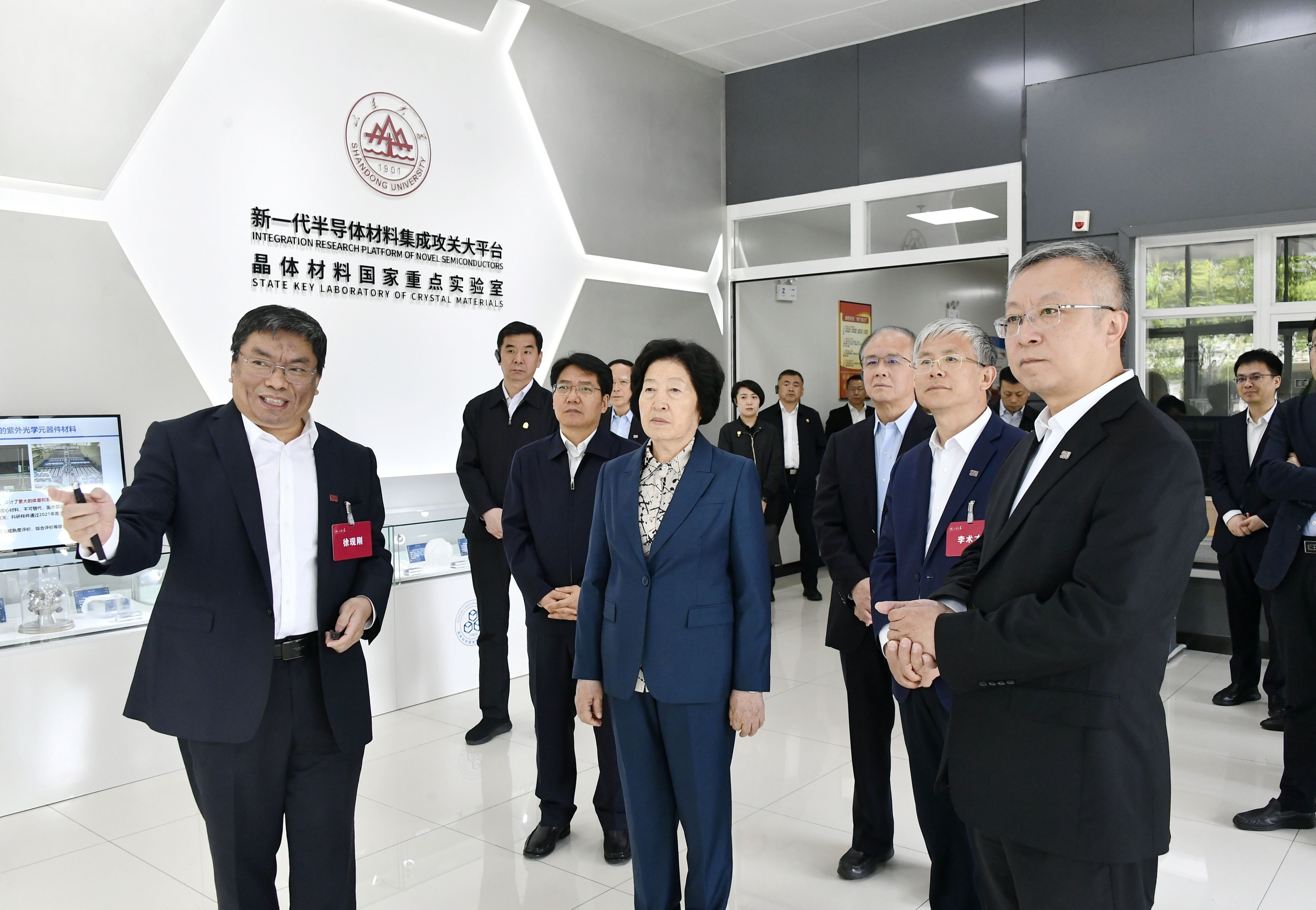 4月29日,山东省委常委、宣传部部长白玉刚一行到访晶体材料国家重点实验室、做爱视频 参观调研。做爱视频 校长李术才,晶体材料国家重点实验室党委书记曲刚陪同调研,晶体材...