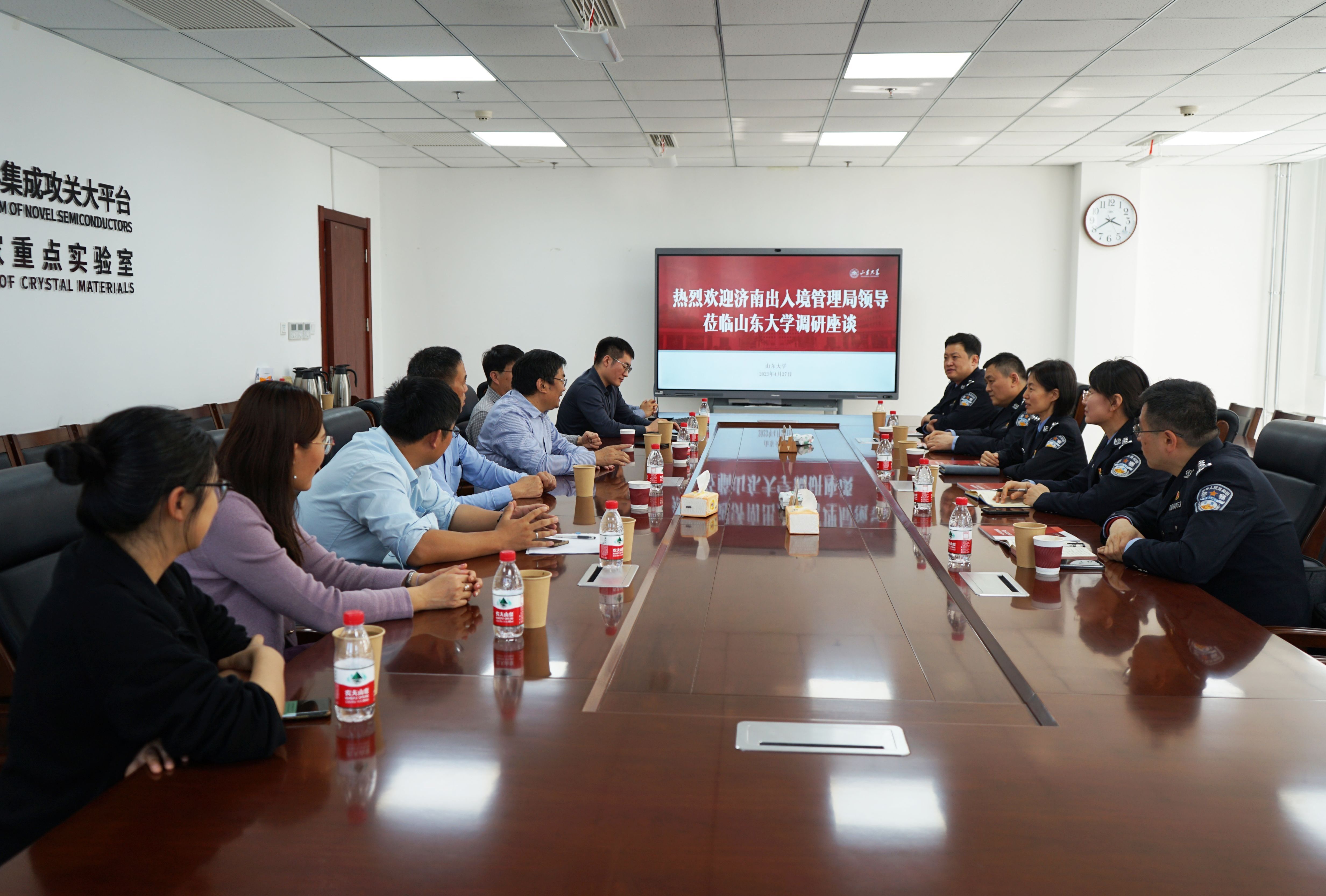 4月27日,济南市公安局出入境管理局领导专家一行来访做爱视频 ,大平台主任徐现刚、副主任王焕杨作相关讲解。集成攻关大平台特聘教授韩吉胜、特聘教授Handoko LINE...
