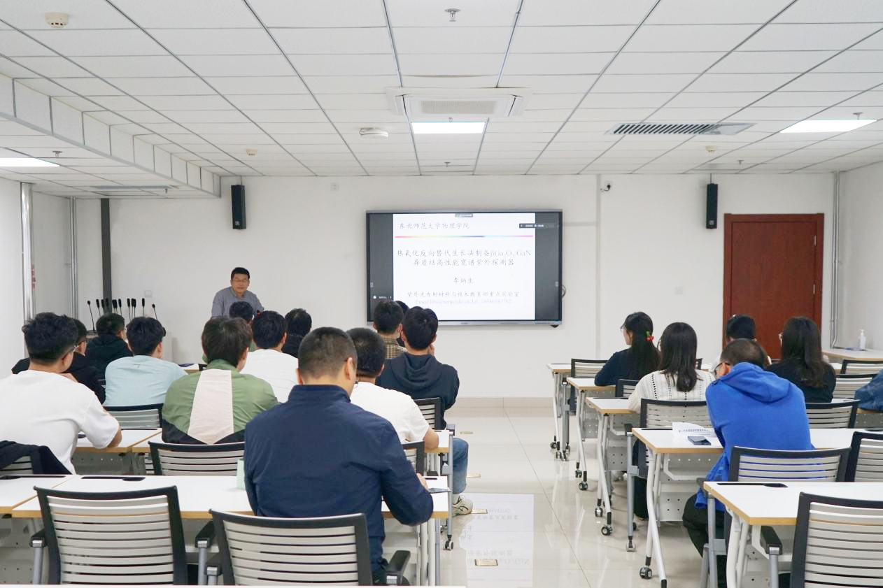 “育晶论坛”成功举办,东北师范大学教授李炳生老师受邀作为本期论坛主讲嘉宾,为平台师生作题为“热氧化反向替代生长法制备β-Ga2O3异质结高性能宽谱紫外探测器”的报告。论坛在半导体研发大楼学术报告厅举办,由大平台副教授穆文祥主持。