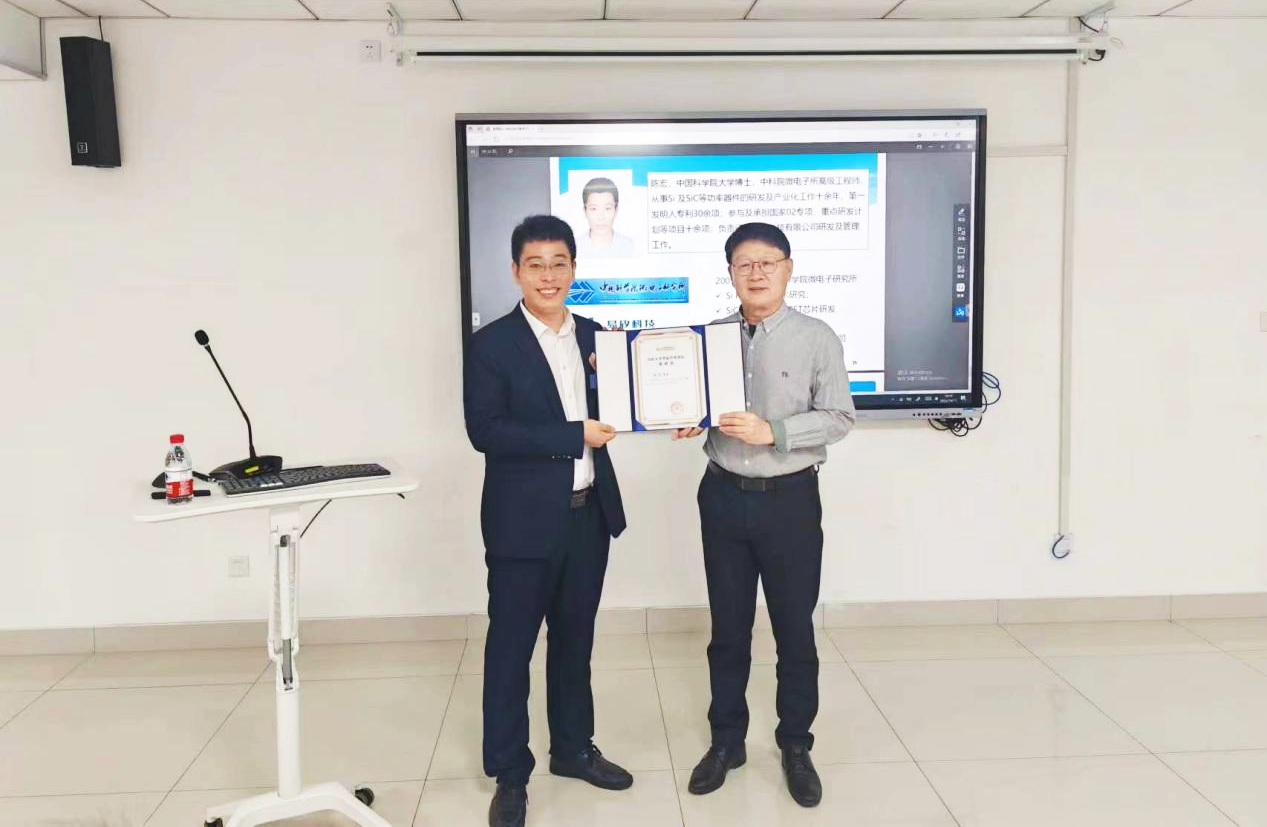 本次报告结束后,参会师生围绕碳化硅器件未来的技术路线展开讨论。交流过后,韩吉胜教授向陈宏博士表示感谢并颁发证书。