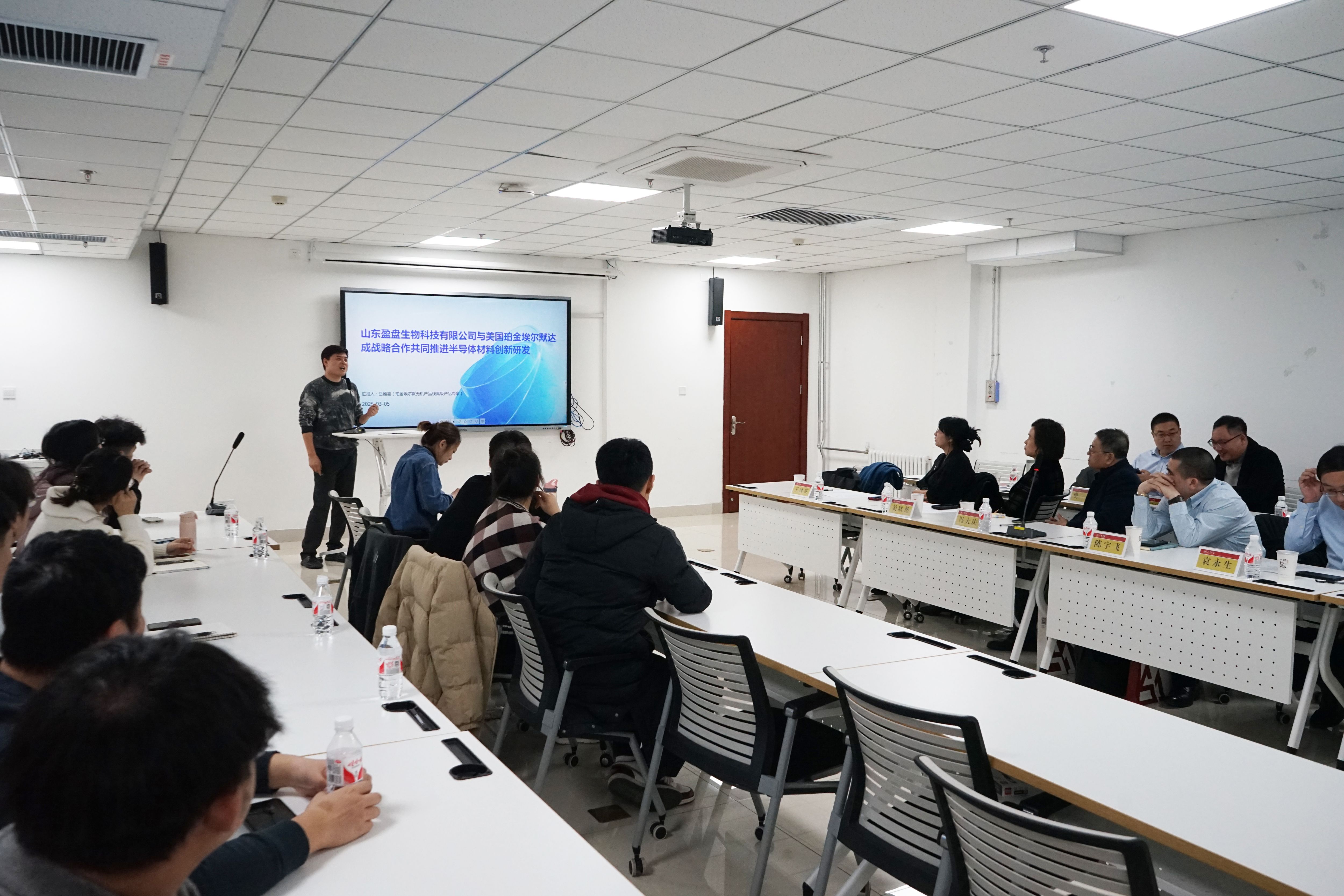 随后,山东盈盘公司高级产品专员岳维喜介绍了半导体行业的发展现状与关键挑战,并围绕公司与美国珀金埃尔默达成的战略合作,详细介绍了公司在服务实验室建设方面的工作以及珀金埃尔默产品在半导体行业研究中的应用。