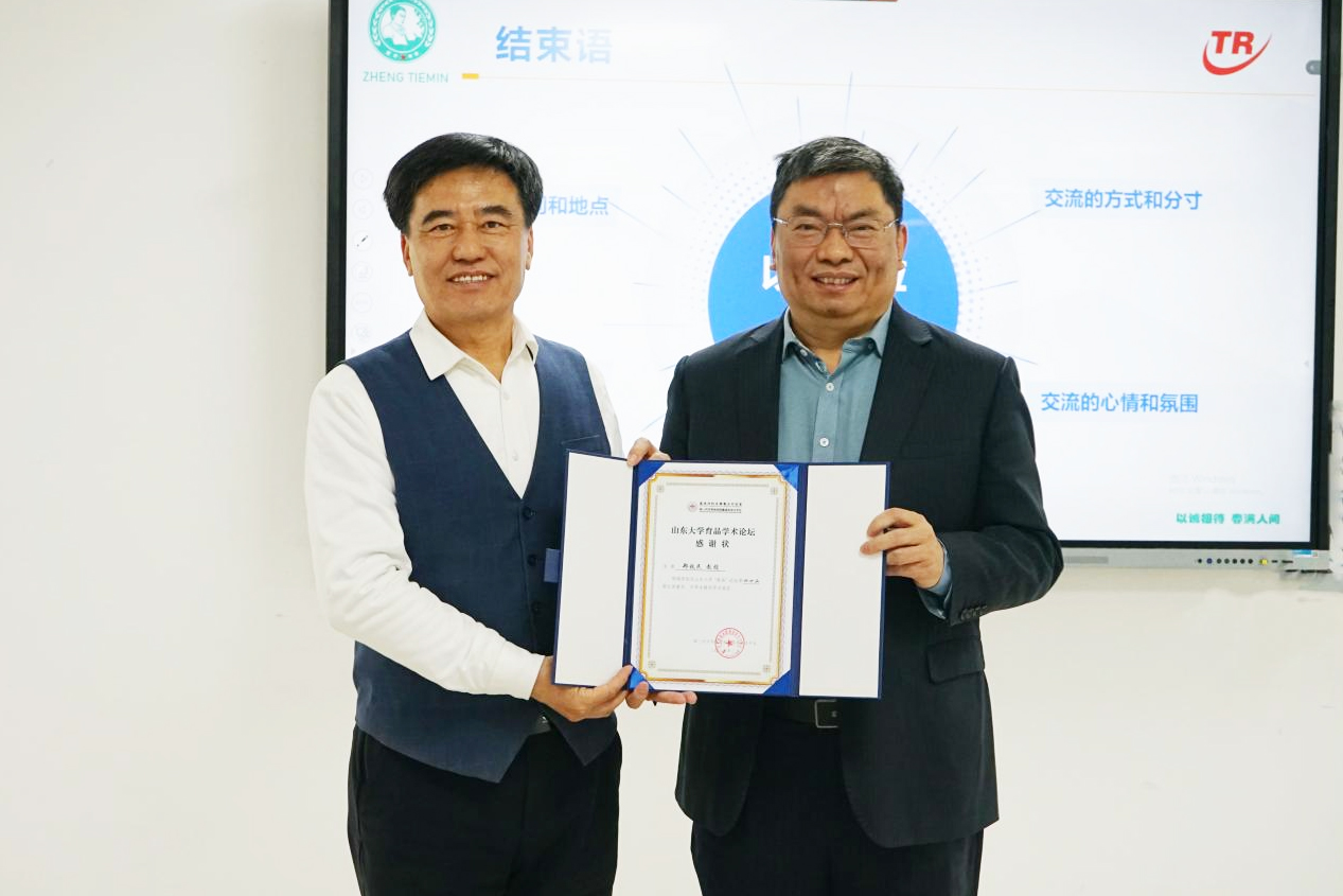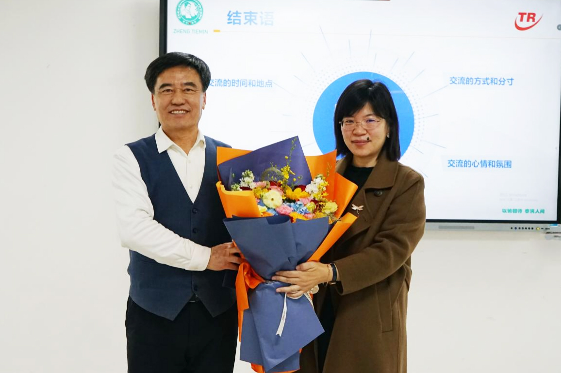 论坛结束后,大平台教授陈秀芳为郑铁民教授献花,大平台主任徐现刚向郑铁民教授表示感谢并颁发证书,同时激励在场学生将学到的交流技巧应用到实际生活中,不断提升自己的沟通能力,为学业及未来职业发展打下坚实基础。