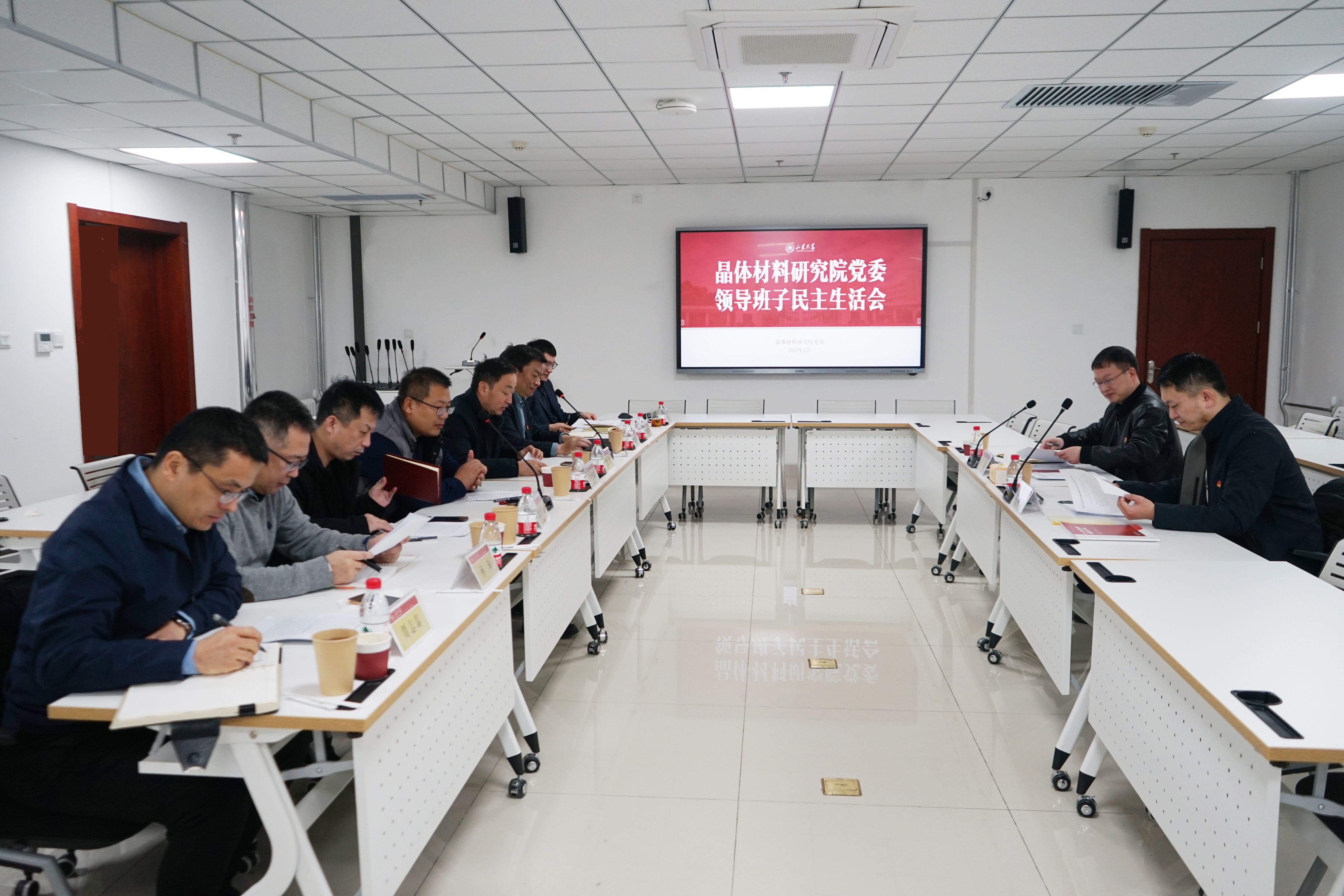2月17日,集成攻关大平台、晶体材料研究院领导班子召开2022年度民主生活会。学校第二指导组副组长王萌同志、成员董林聪同志到会指导,王萌作点评发言。晶体材料研究院党委书记曲刚主持会议。