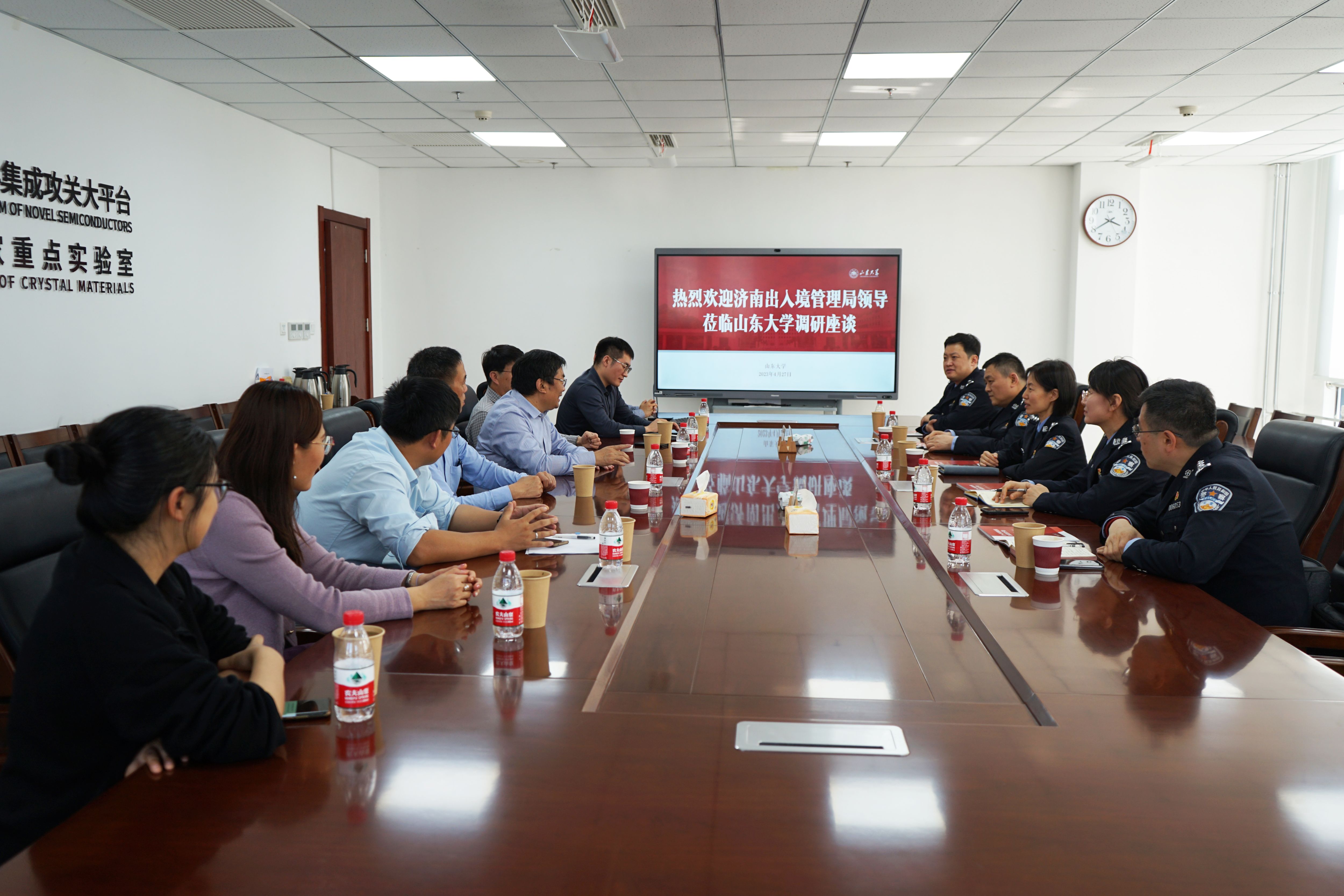 4月27日,济南市公安局出入境管理局领导专家一行来访做爱视频 ,大平台主任徐现刚、副主任王焕杨作相关讲解。集成攻关大平台特聘教授韩吉胜、特聘教授Handoko LINEWIH及新一代半导体器件团队部分教师学者陪同调研座谈。