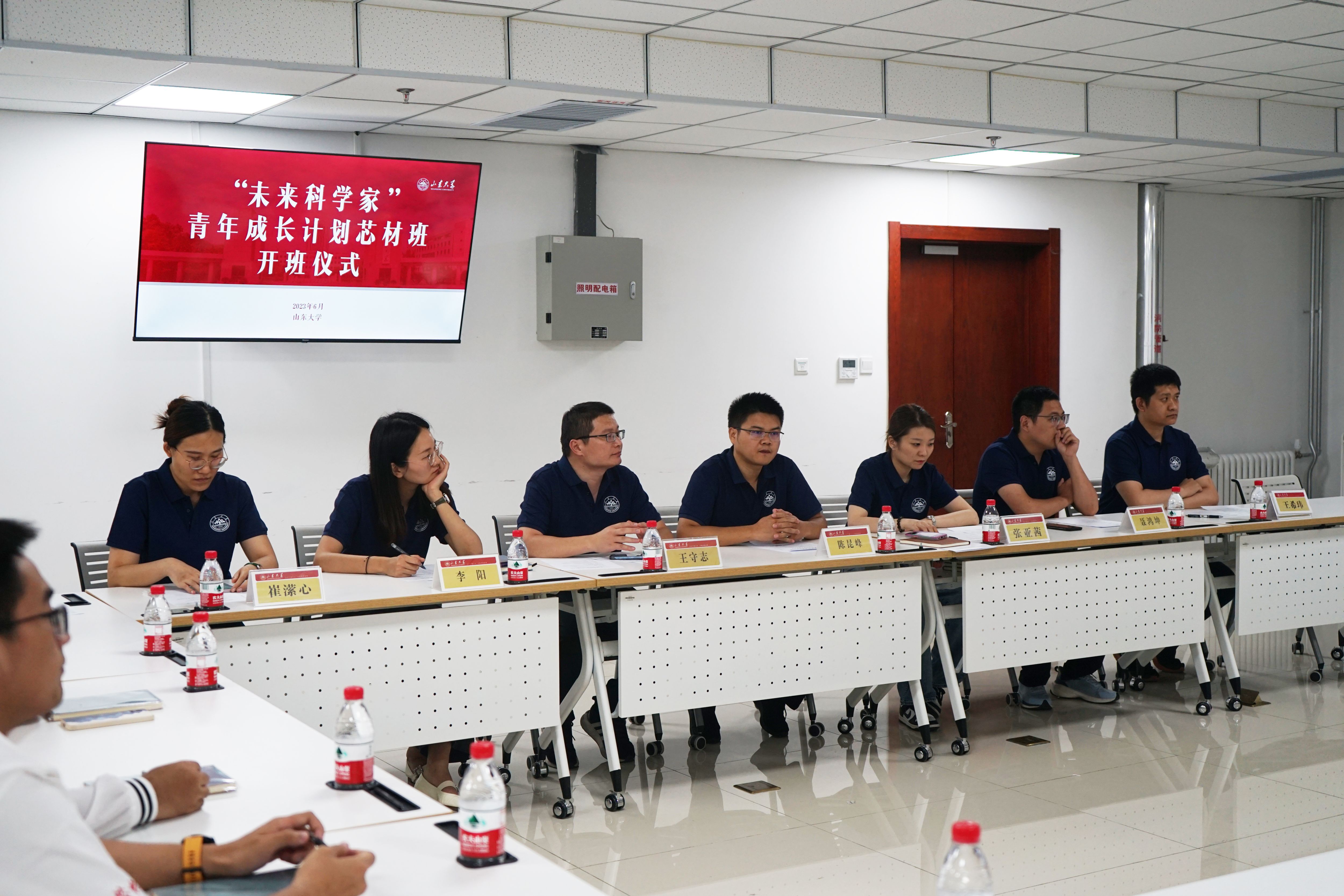 团委主任科员南东周,集成攻关大平台主任徐现刚、主任助理徐明升,大平台班主任、辅导员,首期芯材班全体成员参加仪式。大平台副主任王焕杨主持会议,王希玮作为班主任代表发言,讲解芯材班首期培养计划。