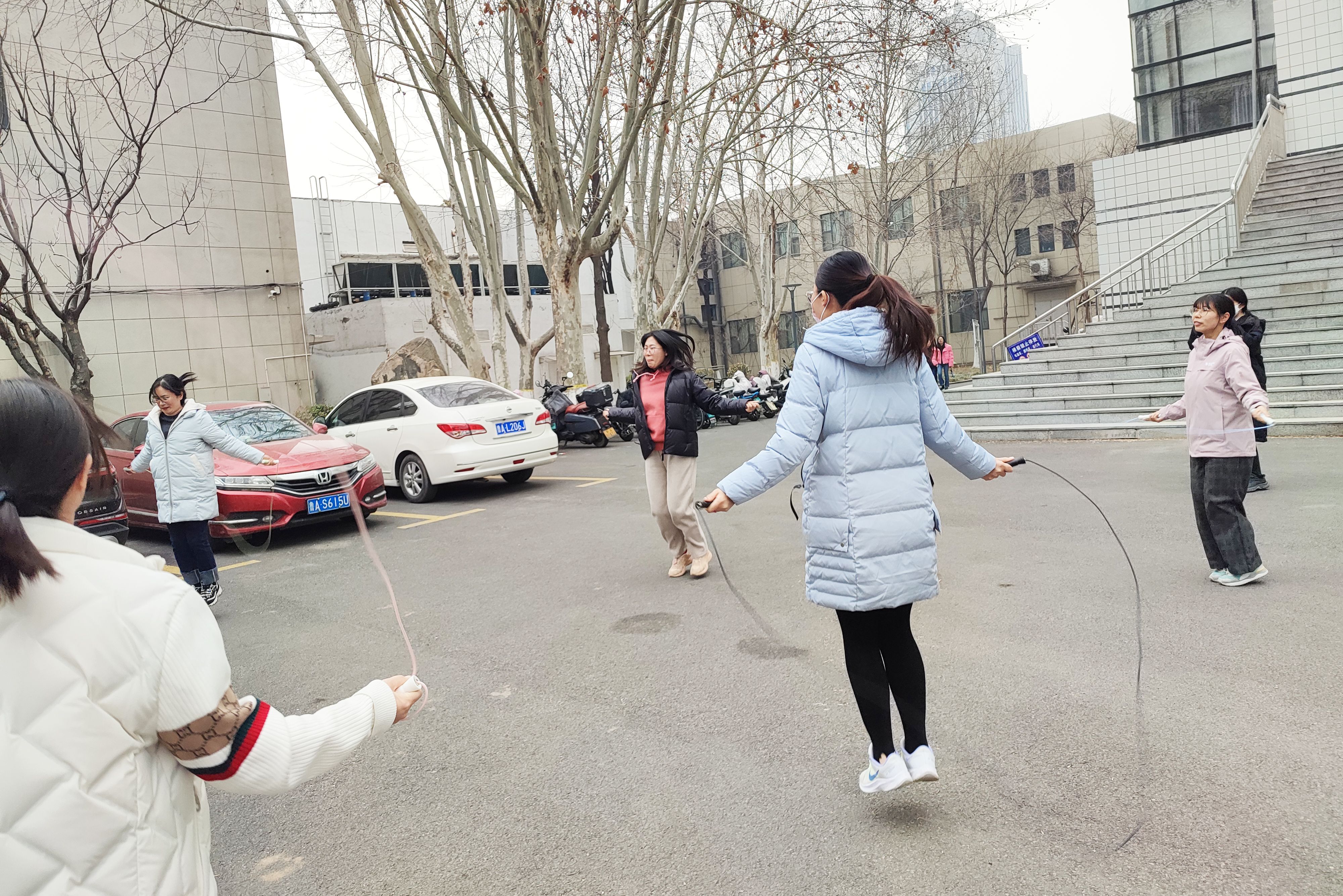 健步走结束后,开始了跳绳活动,老师们个个精神抖擞,敏捷利落地跳起来,现场欢声笑语、热火朝天。