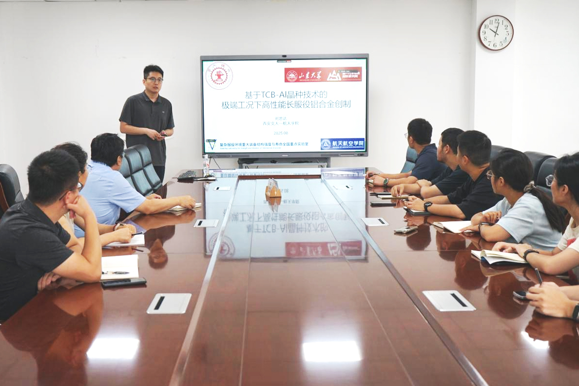 第四十六期“育晶论坛”成功举办。西安交通大学刘思达教授受邀作为本期论坛主讲嘉宾,为平台师生作了题为“基于晶种技术的极端工况下高性能长服役铝合金创制”的报告。本次论坛由大平台谢雪健教授主持。