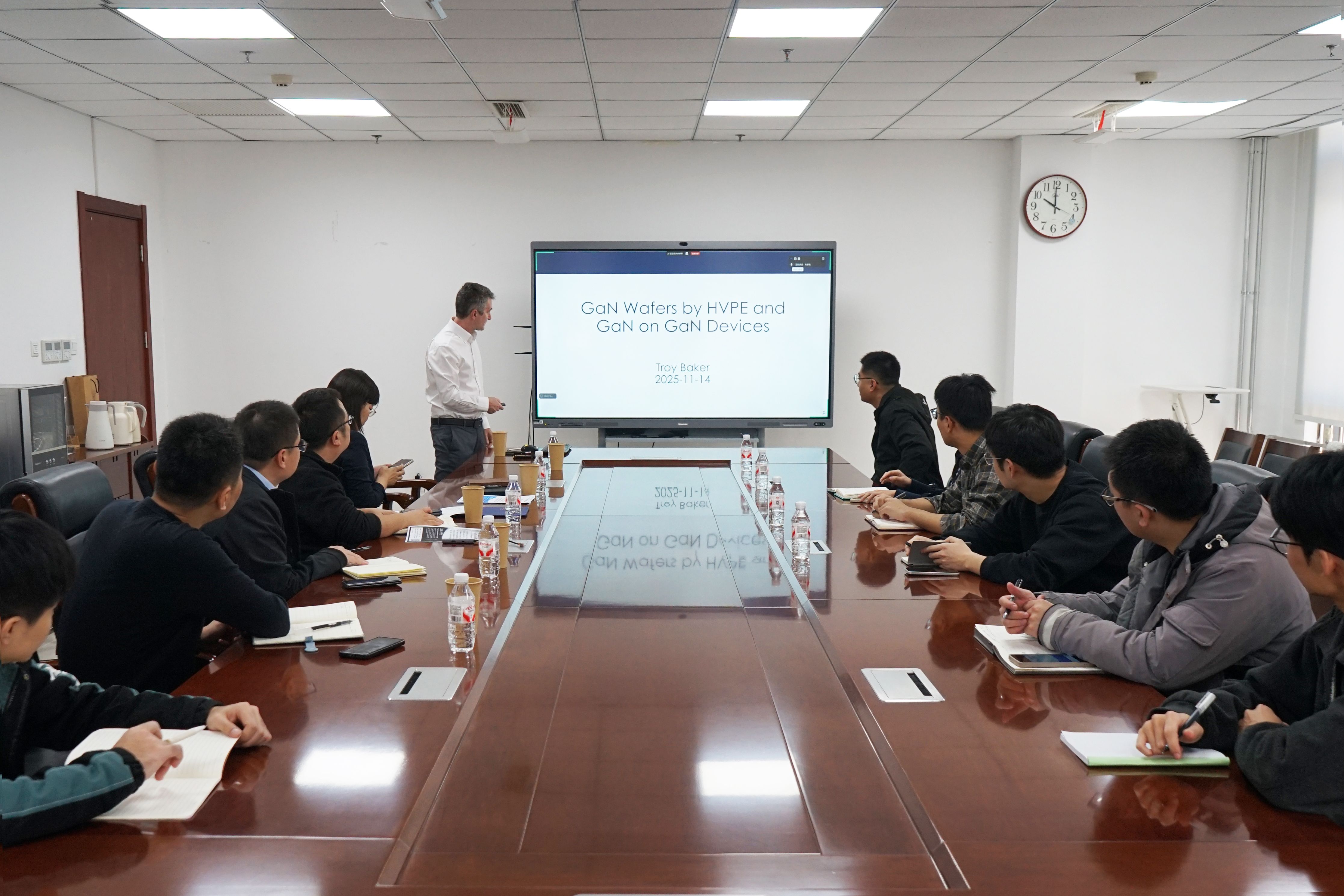 在讨论环节,现场师生就HVPE工艺的稳定性、GaN衬底成本控制、GaN-on-GaN器件在功率电子中的优势等问题,与Baker博士进行了热烈讨论。