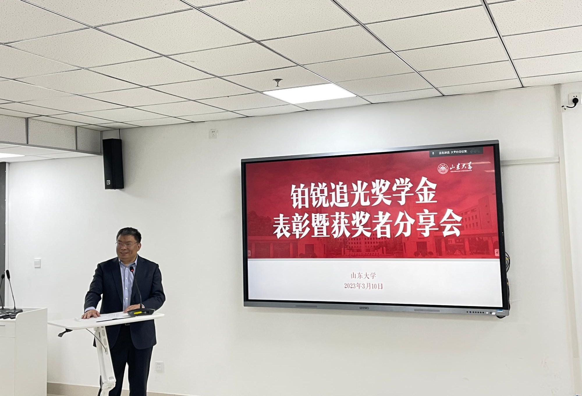 院长徐现刚教授出席会议并致辞。铂锐追光奖学金推动者何京良教授,部分教师代表,首期奖学金获奖学生,部分学生代表参加会议。会议由副院长王焕杨主持。