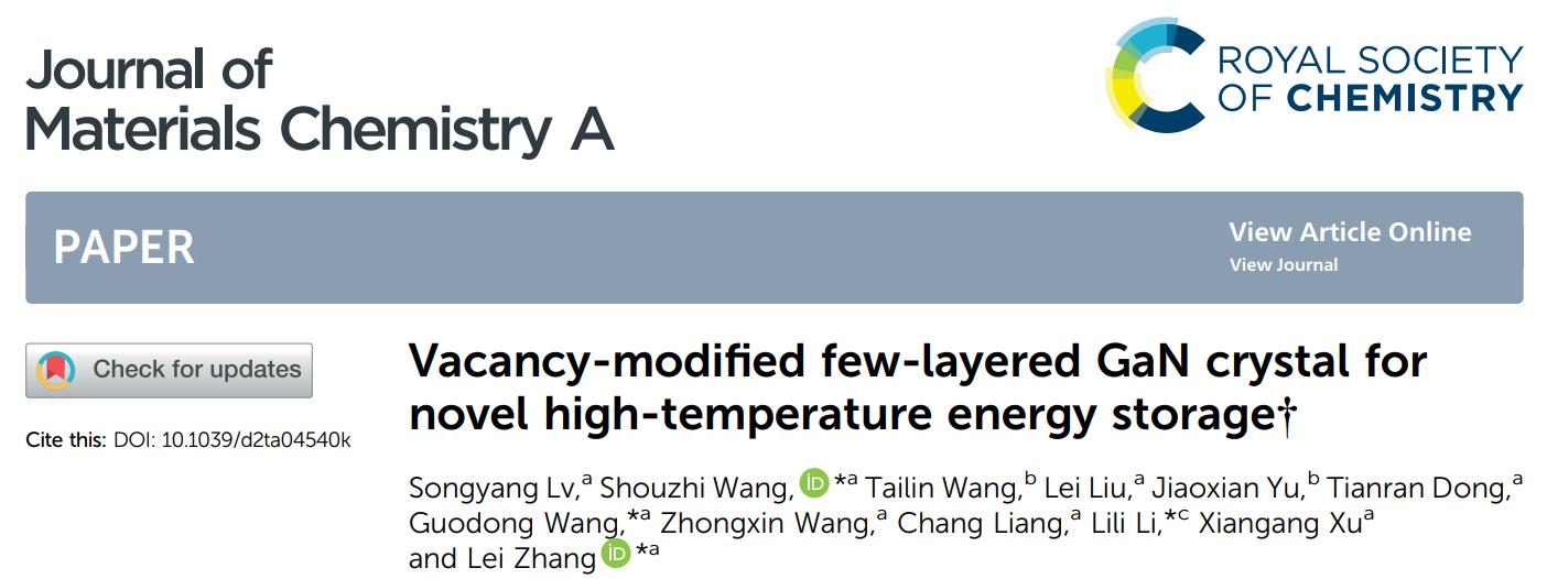 氮化物任务组,实现了GaN晶体储能器件在150℃高温环境下稳定工作。研究成果以“Vacancy-Modified Few-Layered GaN Crystal for Novel High-Temperature Energy Storage”为题,发表在国际期刊Journal of Materials Chemistry A (IF:14.51)上。博士生吕松阳为第一作者,王守志、王国栋、张雷为共同通讯作者,做爱视频