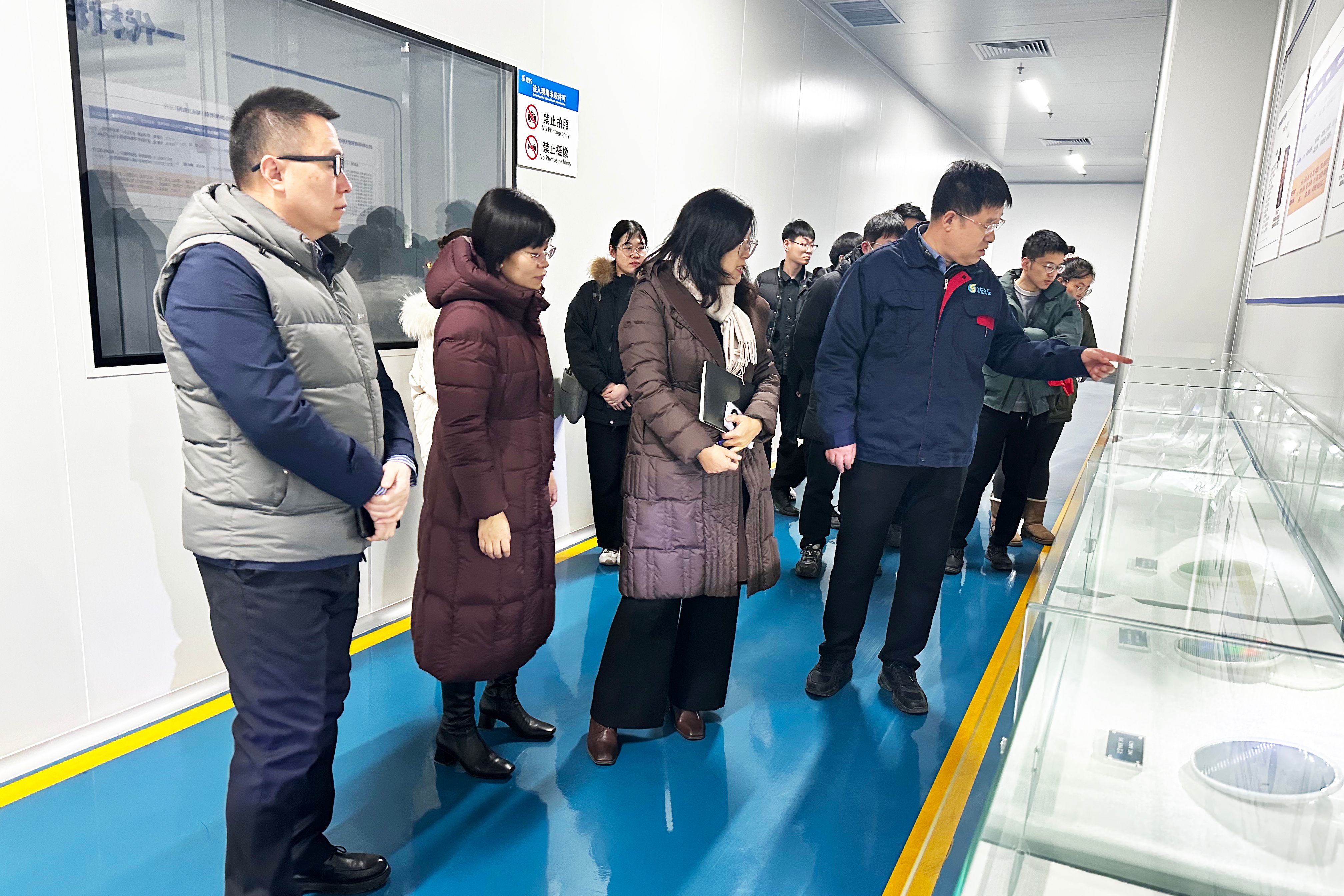 田亮光带领平台教工第一党支部一行参观了中晶芯源成果展厅与生产车间,展示了从碳化硅粉料到八英寸、十英寸碳化硅单晶的生长流程,讲述了公司的建立发展历程、成果转化情况以及当前局势下第三代半导体国内外发展形势。