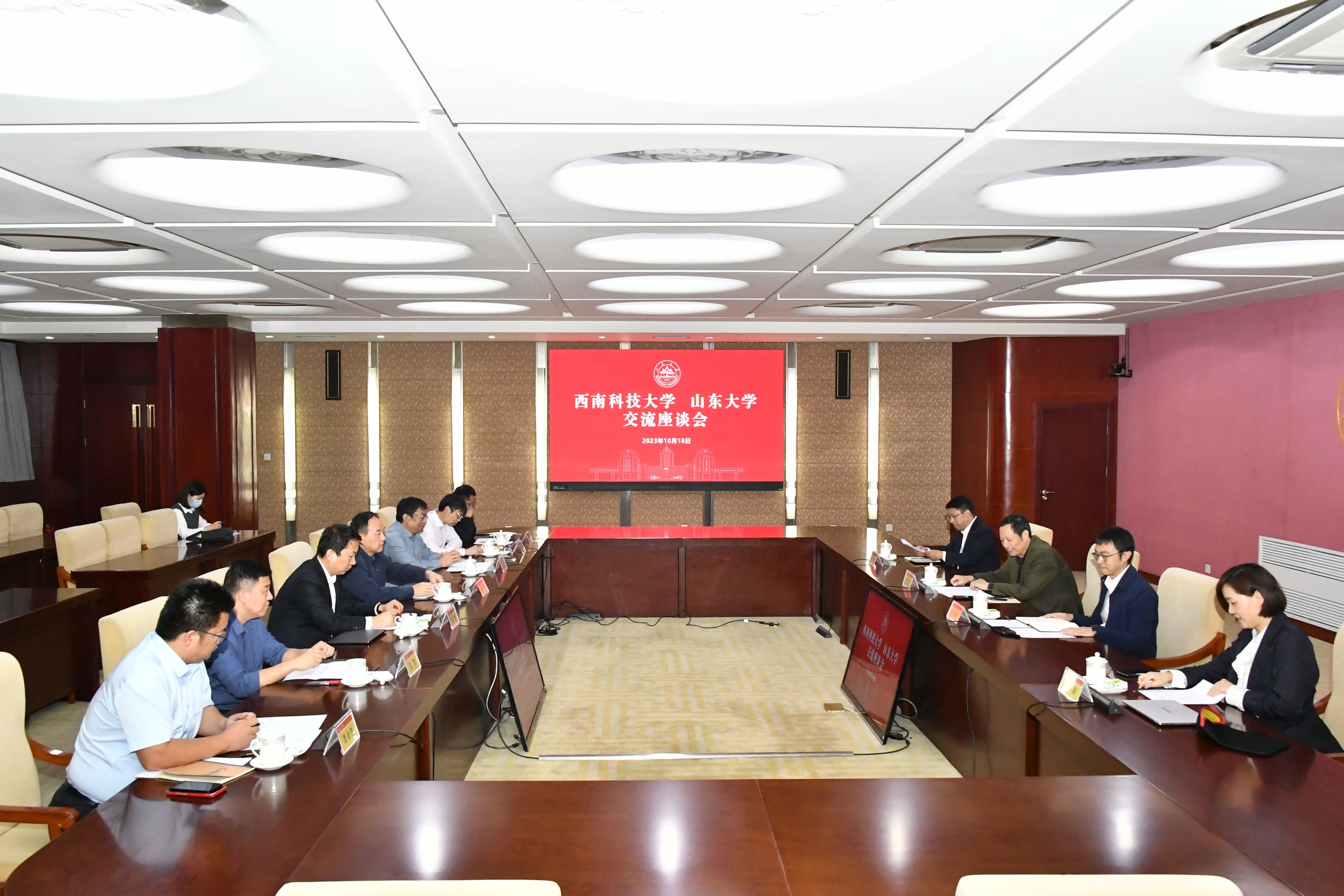 10月18日,西南科技大学党委书记董发勤一行到做爱视频 做爱视频 调研座谈。晶体材料国家重点实验室主任、做爱视频 院长徐现刚教授陪同调研。