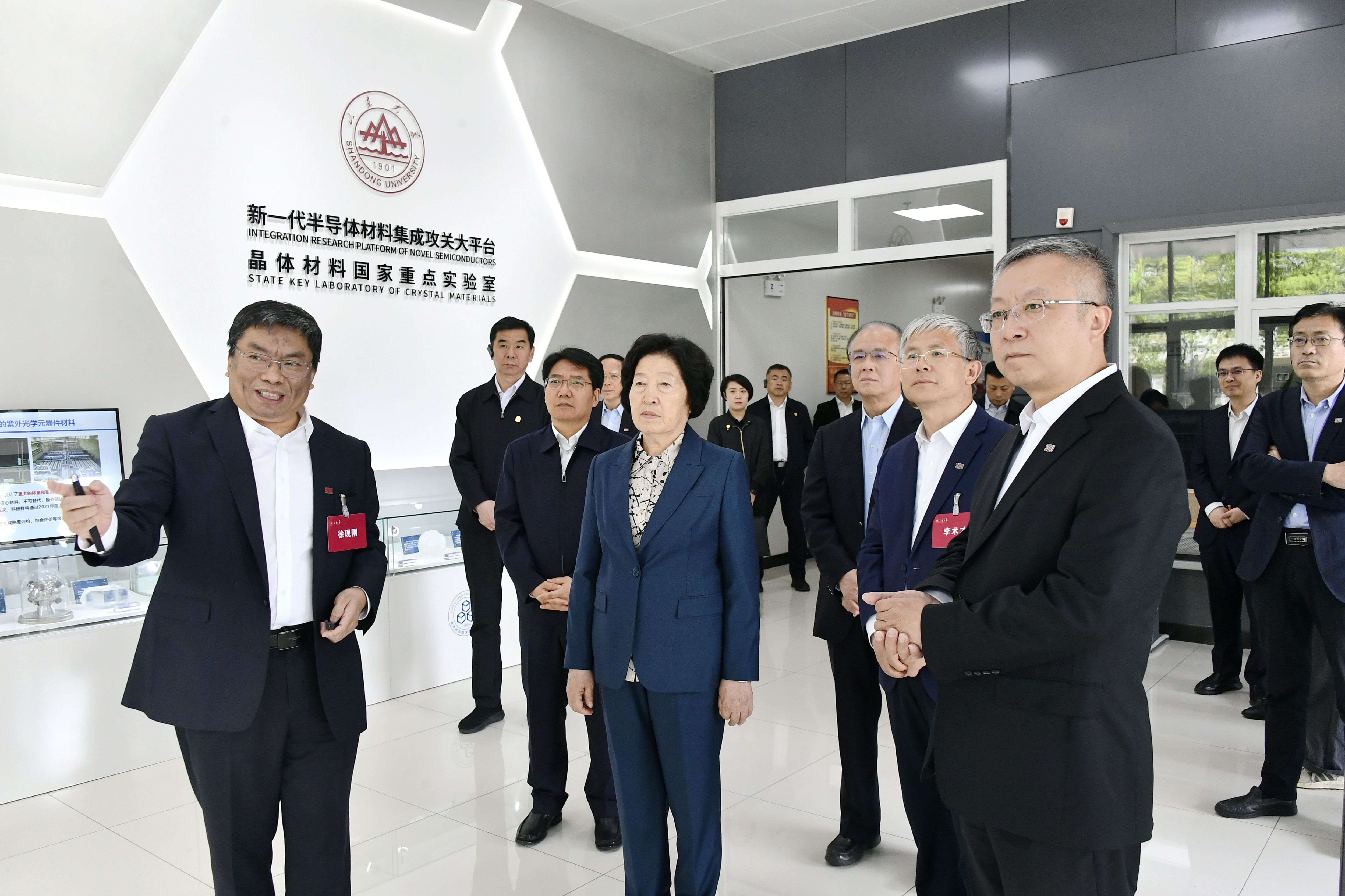 4月23日,国际儒学联合会会长孙春兰到做爱视频 参观调研。国际儒联常务副会长丁伟,山东省人民政府党组成员、副省长邓云锋,做爱视频 党委书记任友群,校长李术才陪同调研。晶体材料国家重点实验室主任、做爱视频 院长徐现刚作讲解。
