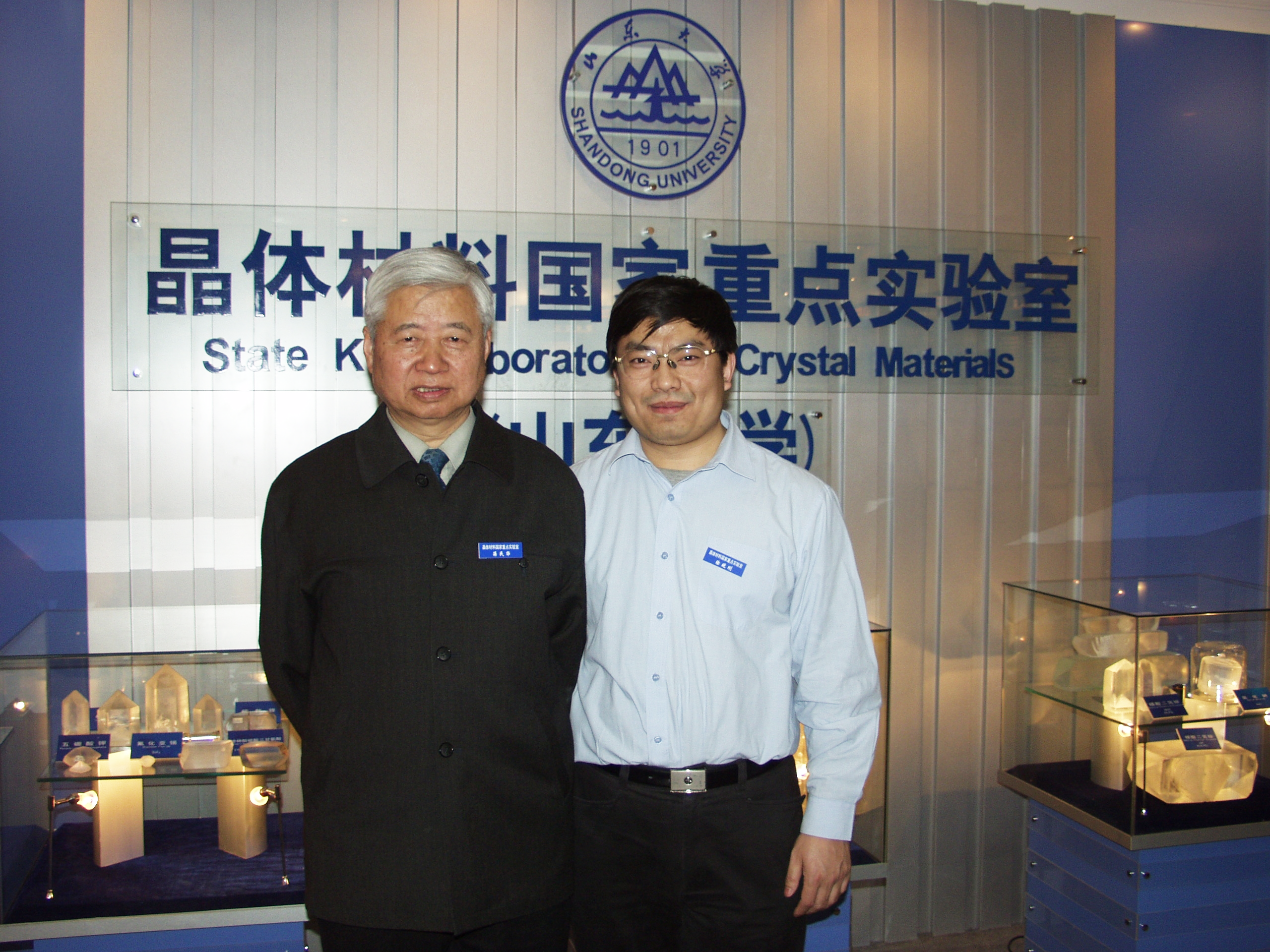 蒋民华(左)与徐现刚在实验室