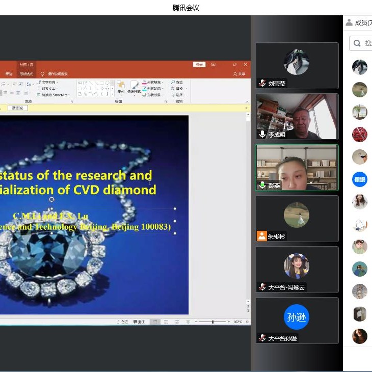 11月24日,第七期做爱视频 “育晶论坛”成功举办,北京科技大学教授、博士生导师李成明受邀作题为“CVD金刚石的制备和应用”的报告。论坛由大平台副教授彭燕主持。图:李成明教授作线上报...